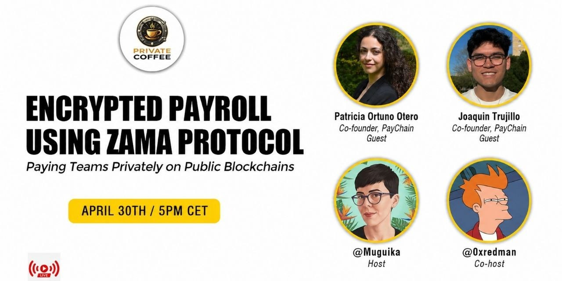 You’re invited to Episode 1 of the Private Coffee Twitter Space, a private roundtable coffee chat with one of the most prolific developers in the Zama community.